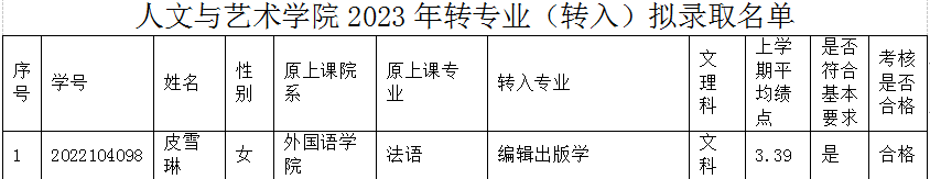 附件:PA视讯官网2023年转专业(转入)拟录取名单