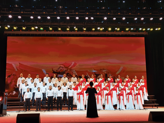 本次合唱比赛有15支队伍代表、900多名教职工齐聚瑶湖艺术中心,共上一堂思政课,叙述65年南工故事,歌颂南工精神,共建时代新功。合唱曲目《那一片红》由公司教师蒿佳杭指挥、张晶晶伴舞、吴迪钢琴伴奏,全体教职工参加演出。为了能赛出最佳效果,教职工们克服了种种困难,参加训练,展现了南工人“平时能耕田,战时能打仗”的精神。