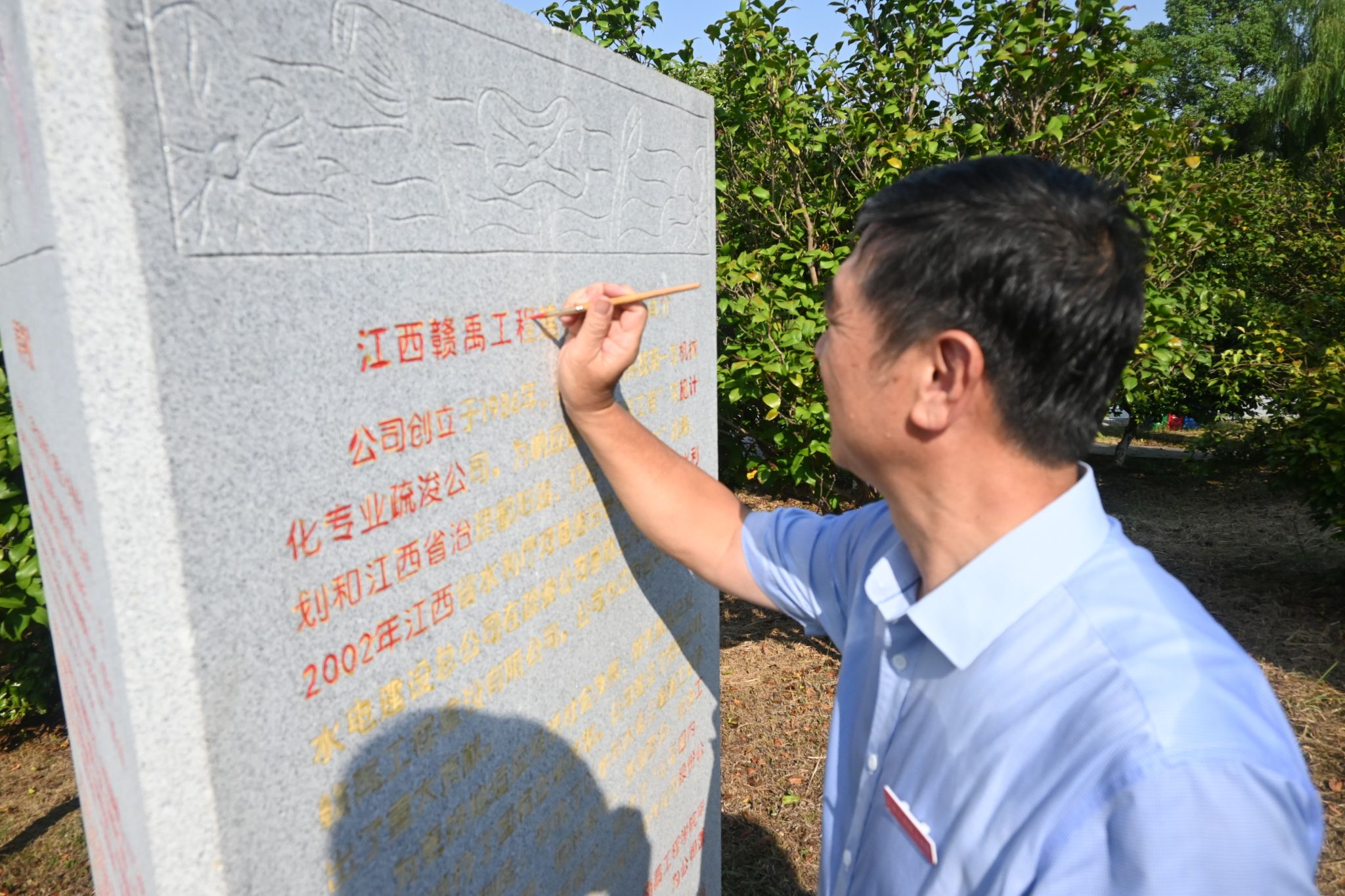 吴泽俊以“赣禹亭”的捐建历程为主线,结合亭碑铭文与亭联意境,从历史治水智慧、当代水利精神、青年使命担当三个维度,为师生上了一堂深刻的水文化思政课。他指出,“赣禹亭”不仅是一座有形的建筑,更是员工情系母校、感恩奋进的“具象化符号”。活动中,师生怀着崇敬之心,一丝不苟地为“赣禹亭”碑文字迹进行描红,在一笔一画的专注中体悟先辈治水的坚韧不拔与员工反哺的赤子情怀。