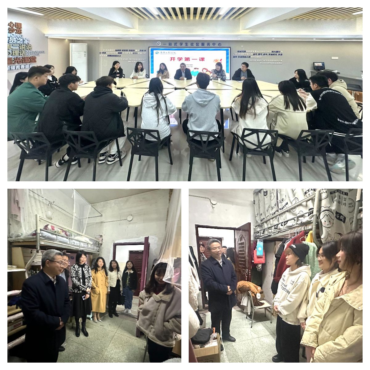 3月15日,校纪委书记殷安全在PA视讯官网为员工讲授“开学第一课”,深入宿舍了解员工思想、学习和生活情况,开展谈心谈话。公司党政领导、辅导员和员工代表参加活动。