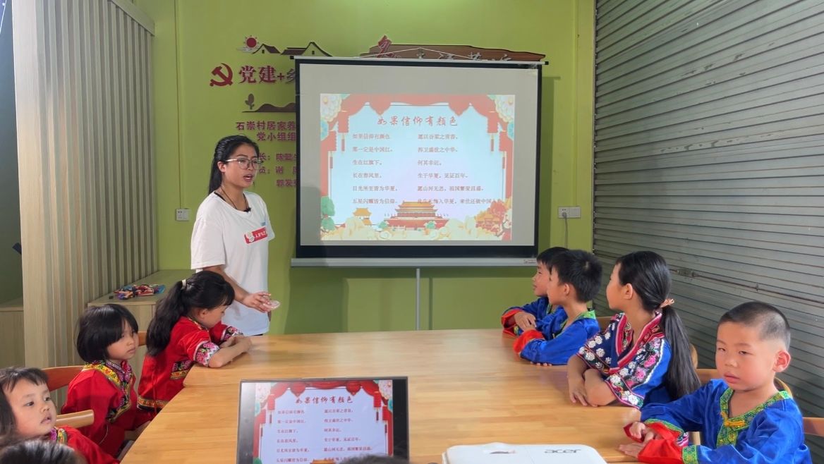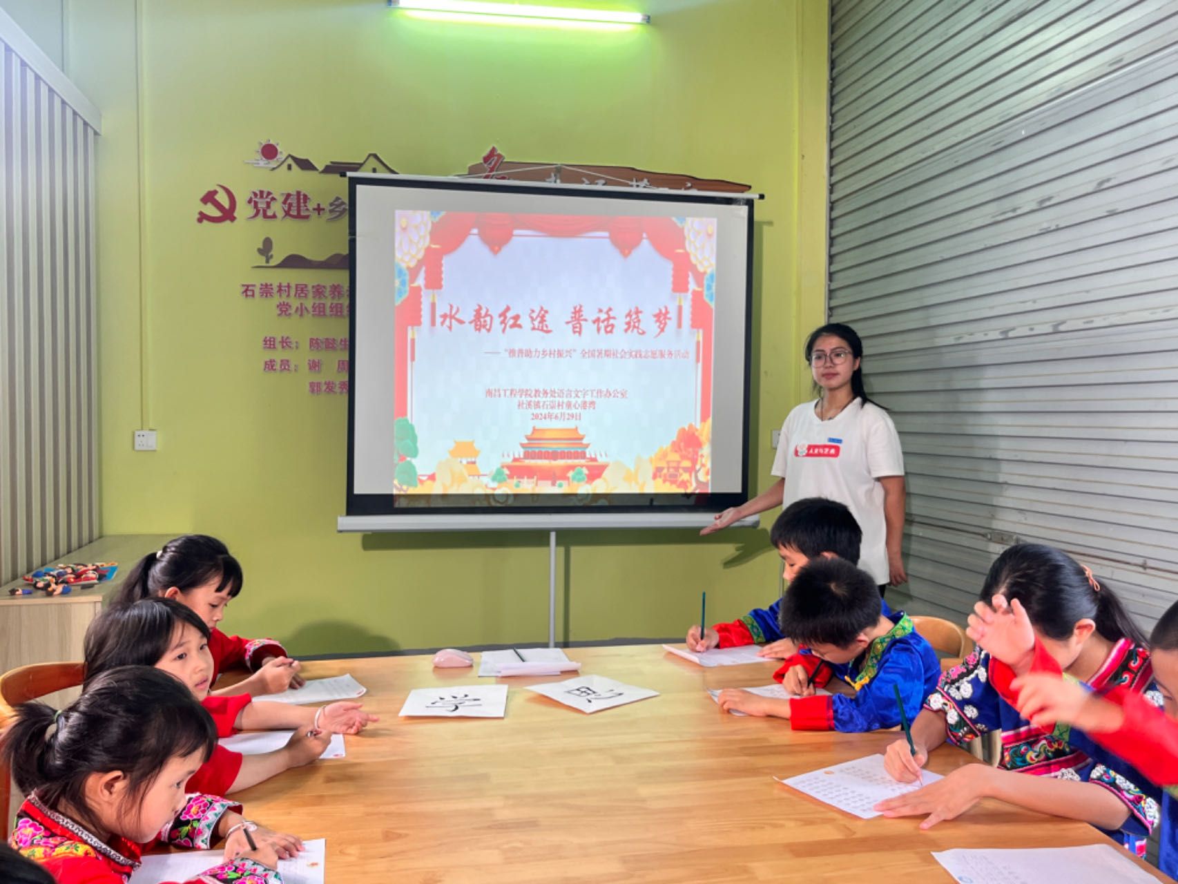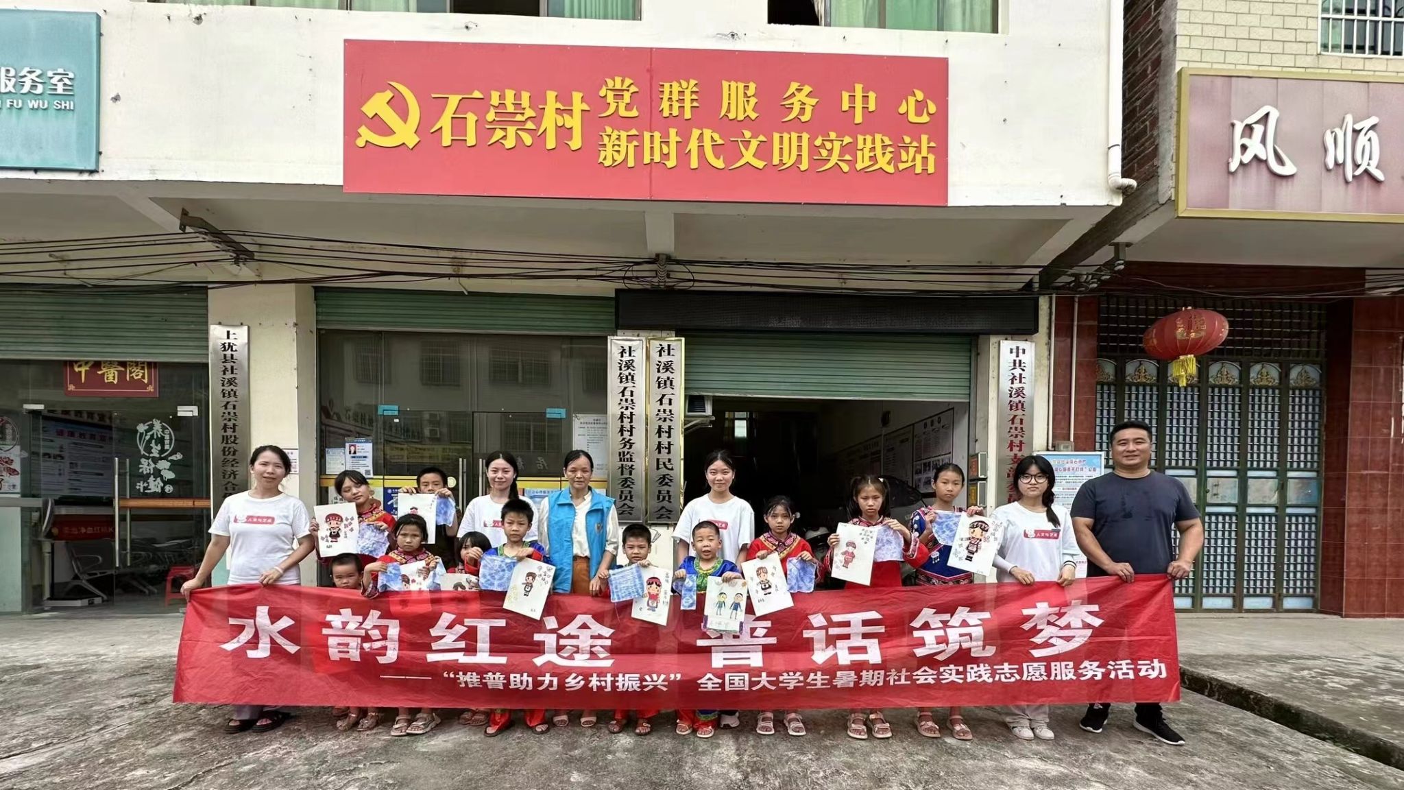 为推广和普及国家通用语言文字,服务铸牢中华民族共同体意识,6月29日,PA视讯官网“水润乡情,涓流筑梦”老员工实践团在江西省赣州市上犹县社溪镇石崇村,面向当地畲族儿童,开展了“水韵红途,普话筑梦”推普活动。
