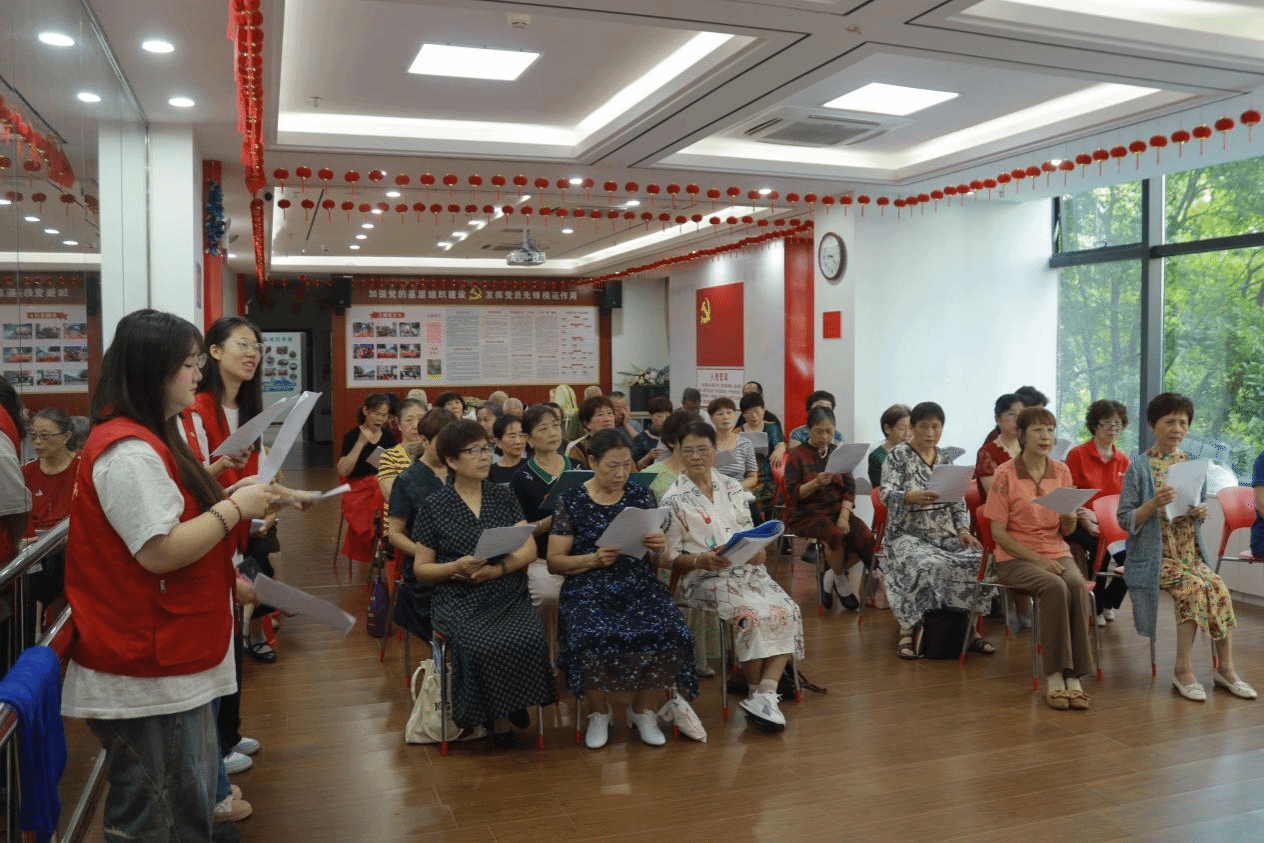在歌唱的同时,青年学子与老年居民们交流了歌曲背后的故事以及党的光辉历程和新中国成立以来取得的辉煌成就,还共同学习了党的二十届三中全会精神,充满了对党的热爱和对国家的自豪。