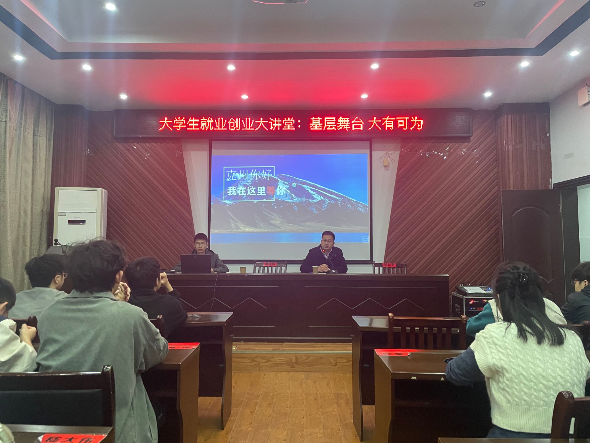 宣讲会上,陆凯结合自身经历,用生动的语言和真挚的情感,讲述了他选择新疆、扎根新疆、建设新疆的初心故事和奋斗历程,特别是他将在校所学设计专长运用到日常工作中,创新发展“一村一品”小作坊,带领村集体致富,助力乡村振兴。同时也建议在校毕业生一是要坚定信念,不忘初心,克服困难,扎根基层信念不动摇;二是提前准备,熟知政策,认真了解基层就业政策、岗位需求和生活环境,做好充分的心理和物质准备;三是发挥专长,贡献力量,学好专业知识,立足基层实际,让专业优势为自己将要从事的行业插上腾飞的翅膀。