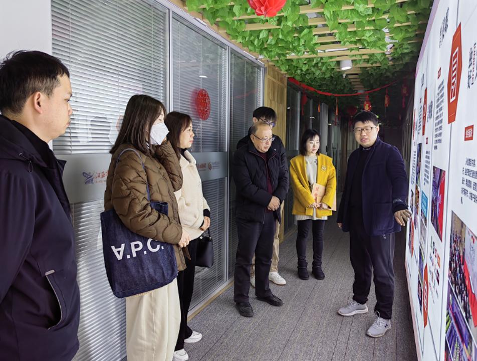 公司副总经理高彦江、总经理助理刘伟、徐爱平等陪同下首先参观了公司文化长廊和文创展厅,通过讲解和介绍进一步了解了公司的发展历程、发展前景、经营理念、主营业务及人才需求。一同看望了在公司实习实践的三位视觉传达专业的毕业生,详细了解了他们的工作实习情况,总经理助理刘伟对三位毕业生的专业素养、业务水平及工作态度给予了高度评价。