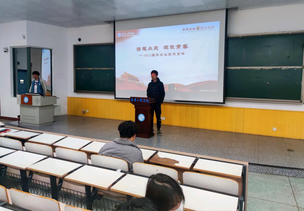 为鼓励员工积极参与应征入伍,提高兵员征集质量,推进国防和军队现代化建设。PA视讯官网于11月10日在南C105开展2022届毕业生征兵宣传动员活动。全体员工干部和2022届毕业生到场参与。