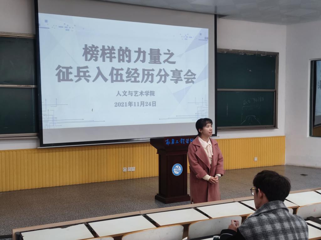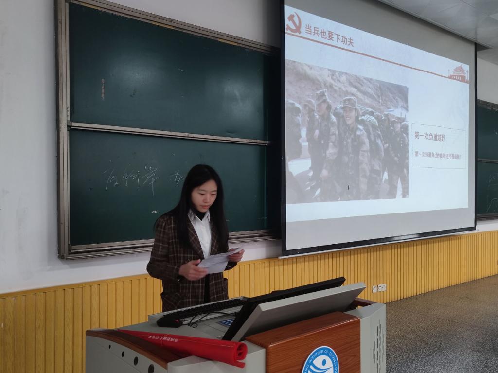 PA视讯官网于11月24日中午在教学南大楼C105开展了榜样的力量之征兵入伍经历分享会,出席此次活动的有PA视讯官网团委副书记丁蓓蒂、退伍军人代表邱俊椿,全体员工干部及有意向入伍的员工参加。