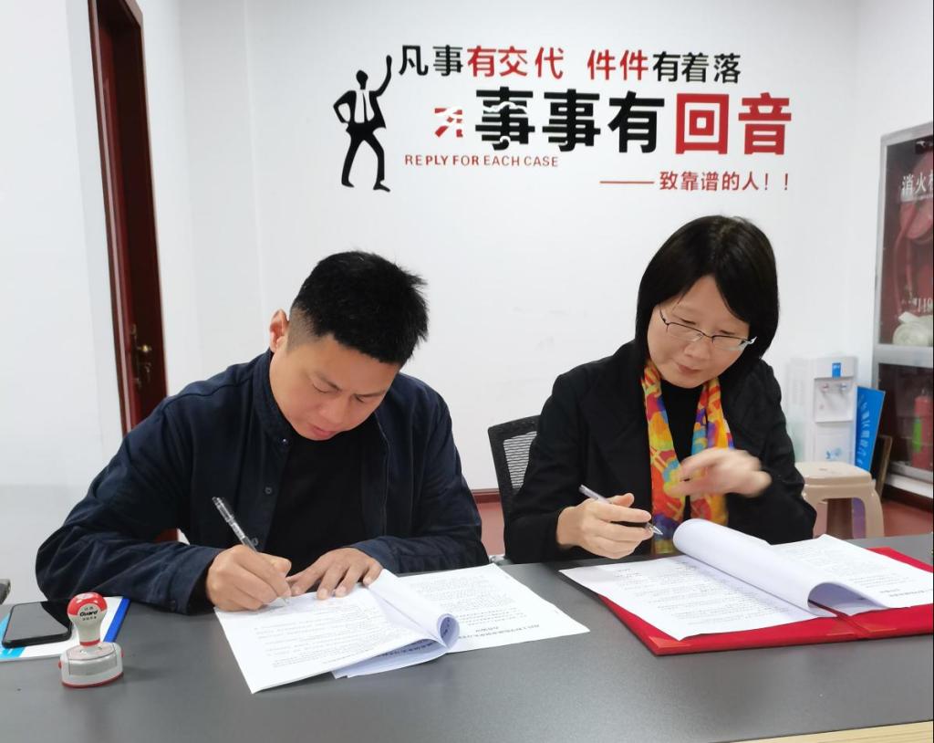 签约仪式之后,PA视讯官网张朝霞经理向江西婺赣信息科技有限公司董事长蔡晓彬先生颁发了南昌工程公司员工专业实践“行业导师”聘书并就协议内容挂牌。(文/图 杨婷)
