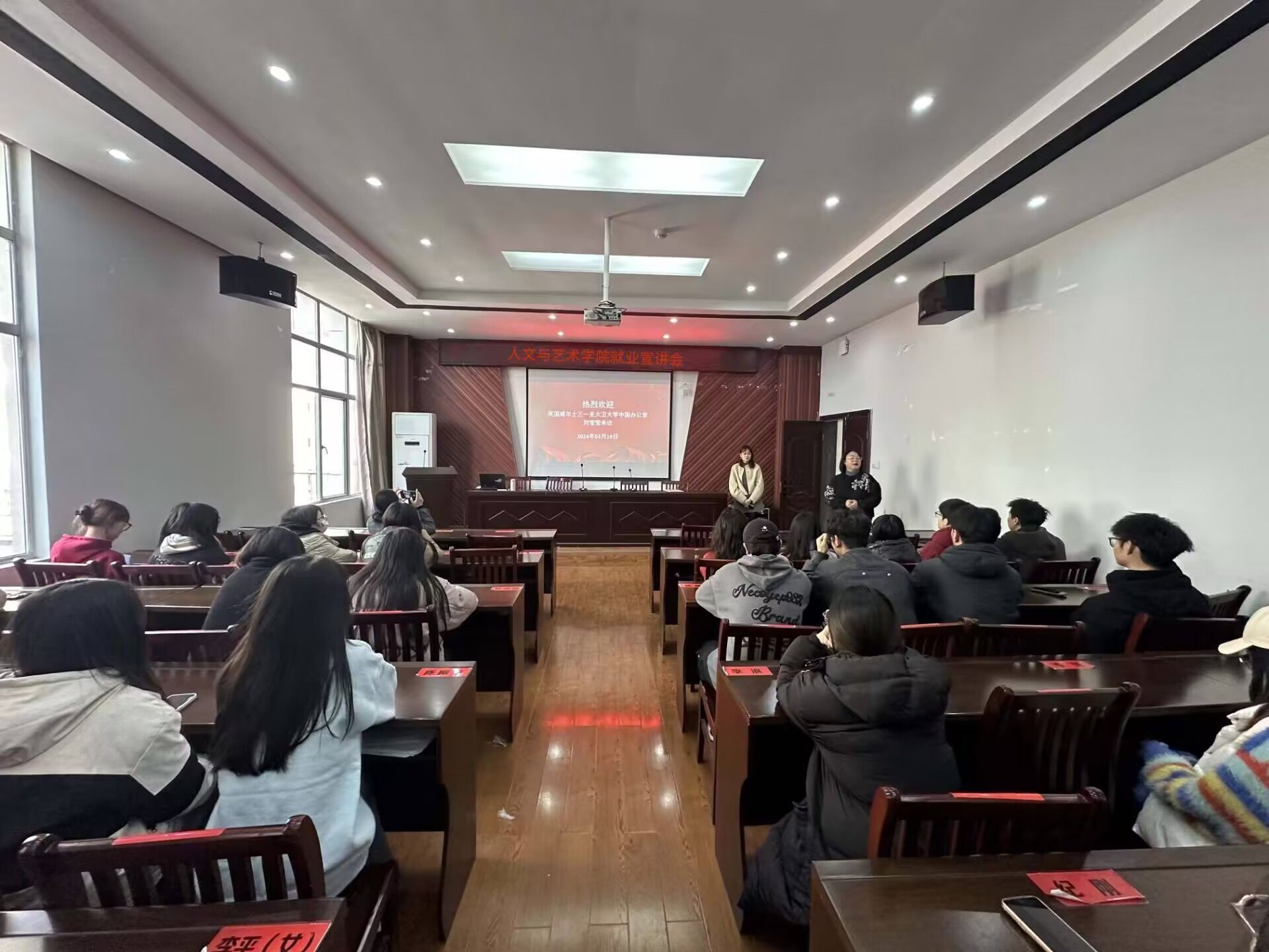 随后,江西斗半匠文化传媒有限公司、江西酷哦科技有限公司以及江西萌力互动科技有限公司于公司A230会议室开展了招聘宣讲会,共50余名毕业生参加。宣讲会后,公司一行参观了公司创新创业园、院现代传媒实验中心、艺术与传媒老员工创新创业基地。校企双方在人才培养、校企合作、创新创业等方面达成产学研合作意向,未来将在人才招聘、课程实训、联合培养等方面深入合作。(文/兰龙焱 图/马浩哲)