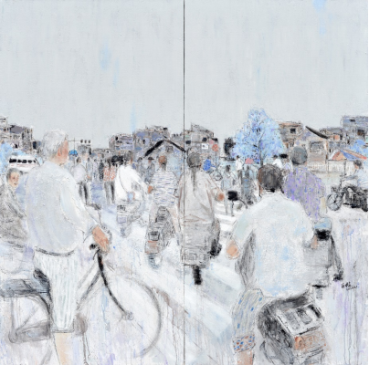 (油画 张明远 《上班路上的风景》 180cmх180cm)