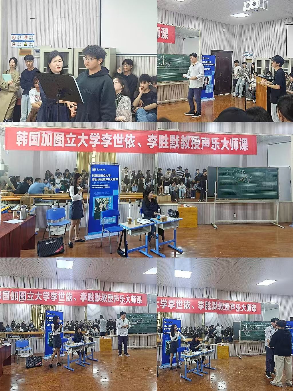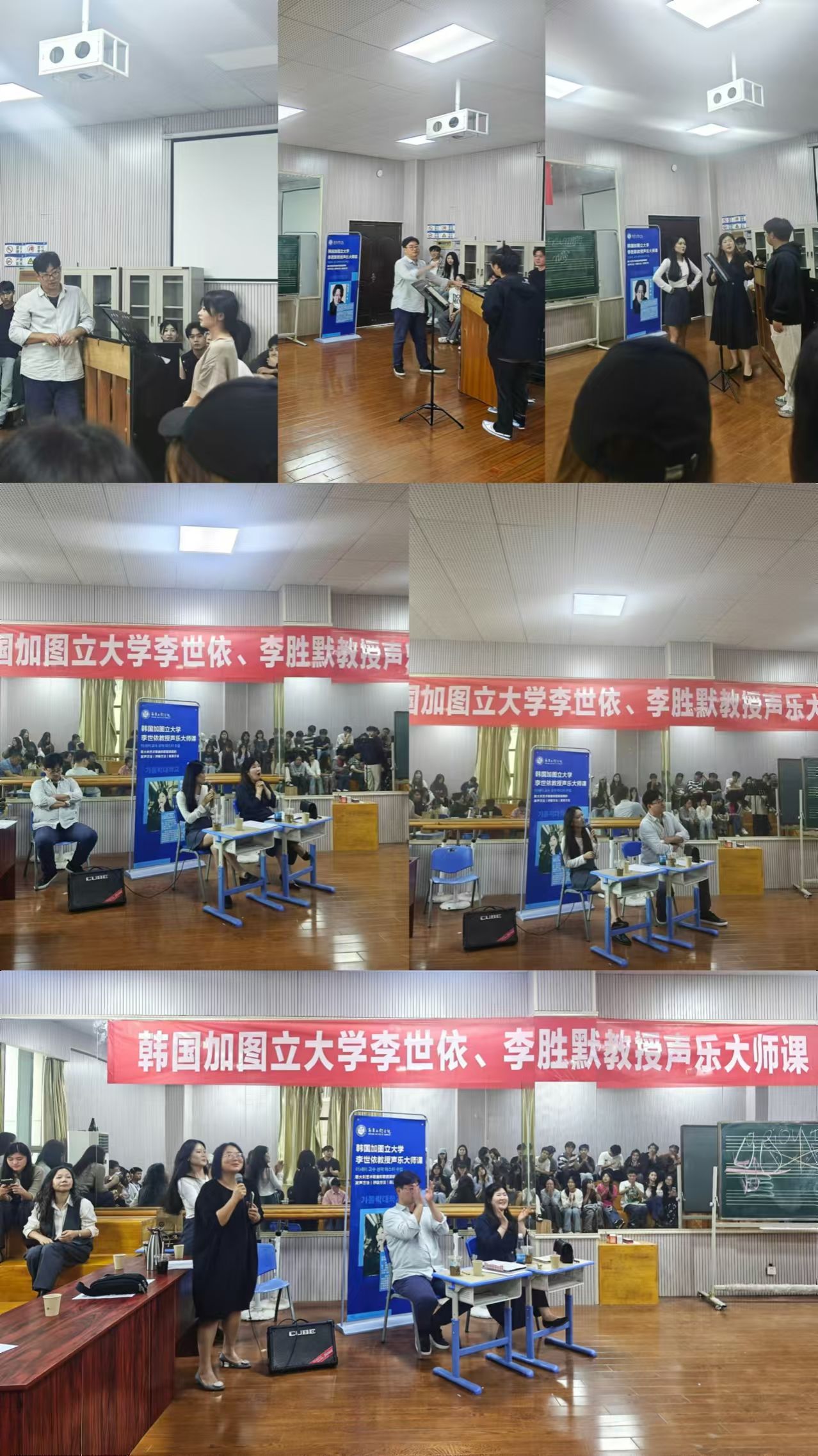 2024年10月17日,南昌工程公司人文艺术公司在艺术楼A404举办了一场高水平的声乐大师课,特邀韩国加图立大学著名声乐教授李世依和李胜默到校授课。活动由人文艺术公司经理万芬芬主持,人文艺术公司副经理黄春燕及音乐教研室多位教师出席。