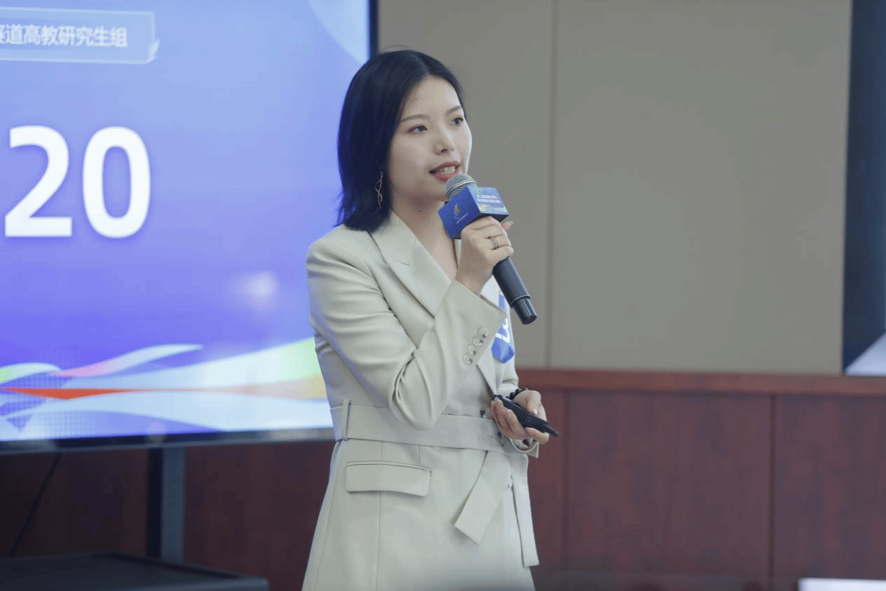 在决赛现场,余佳玮以《勇立潮头再击桨 品牌逐梦正当时》为题,立足出版专业特色,结合中国品牌国际传播的时代命题,通过“职业画像—价值赋能—发展路径”三维建构,系统阐述了“国际品牌传播官”的职业发展蓝图。其作品既彰显了扎实的出版专业素养,又展现出深耕文化传播、助力中国品牌走向世界的使命担当,获得评委们的一致认可。