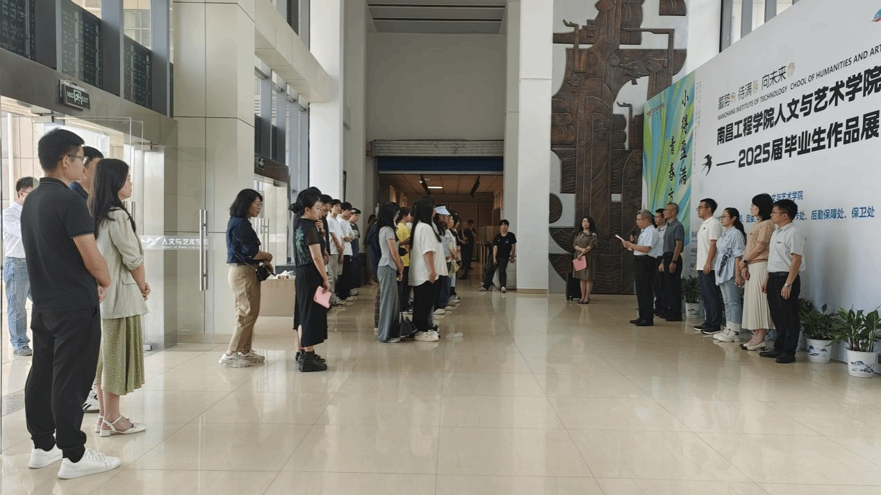 洪恩强随后宣布毕业作品展正式开幕。在观展环节,与会领导细致观摩了视觉传达设计、环境设计、产品设计、数字媒体艺术四个专业方向的百余件作品,对作品展现的专业性、创新性给予充分肯定,特别强调“设计教育要紧扣时代需求,引导员工要通过设计实践回应社会关切”。