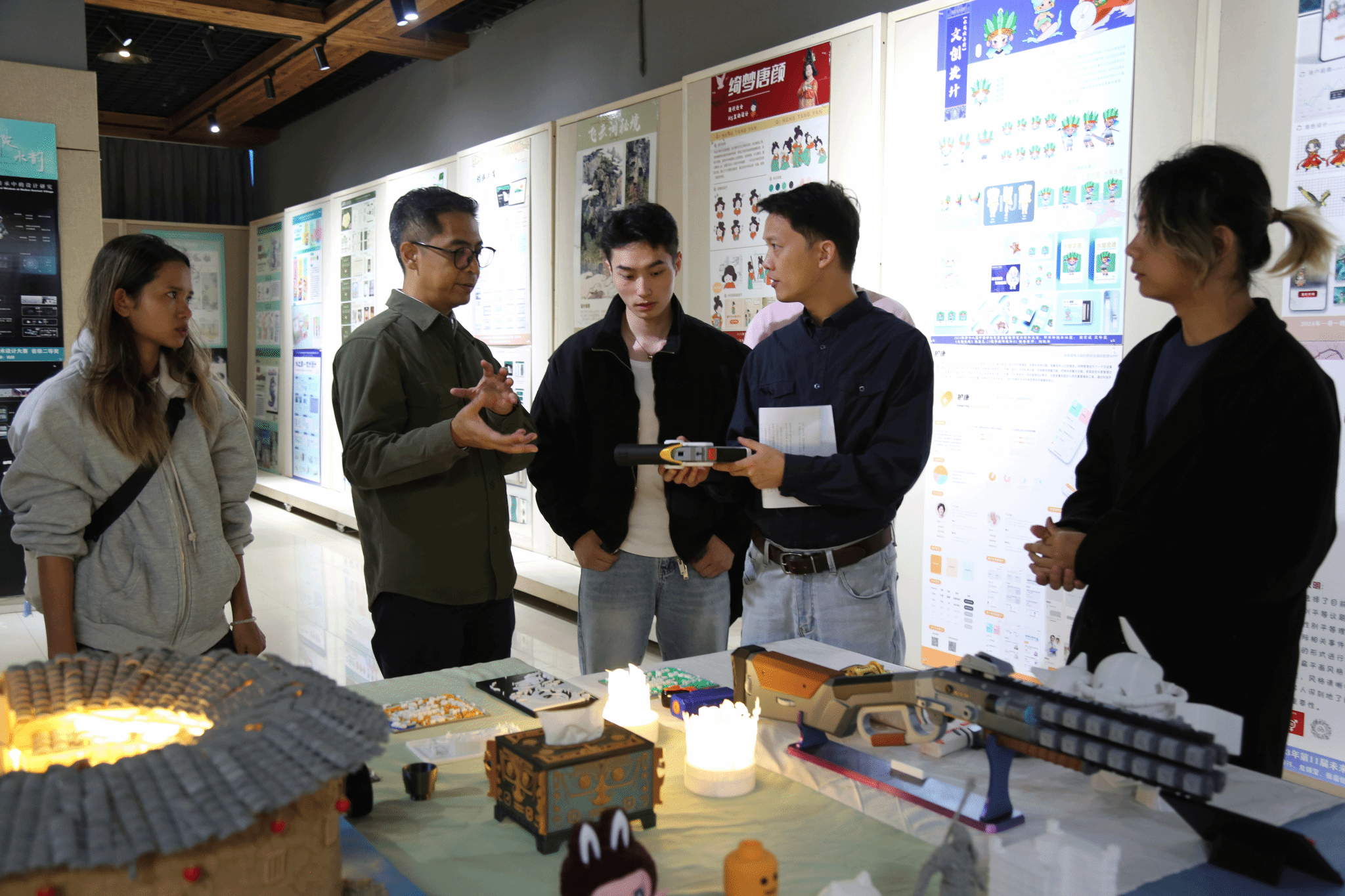 随后的座谈会上,双方围绕“地域文化赋能艺术教育”展开讨论。公司教师分享了“采风+创作+展览”的实践教学模式,泰国师生则介绍了其本国高校写生课程中的应用案例。代表团Panu Suaysuwan教师表示,赛事作品的专业水准与黔阳采风作品的文化温度令人印象深刻,为两校实践教学提供了宝贵参考。此次参观交流不仅让泰国师生直观感受到中国艺术的多元魅力,更为两校搭建了专业对话的桥梁。参加活动的院领导张记刚表示,未来将继续推动建立两校艺术专业员工联合创作项目,以艺术为纽带深化中泰文化交流。