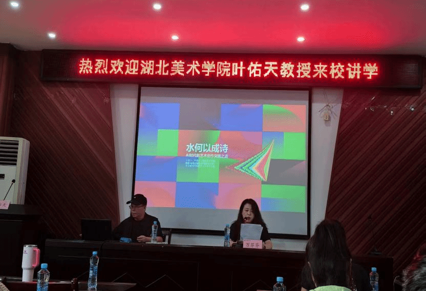 10月17日,湖北美术公司教授、博士生导师叶佑天应邀做客公司学术讲坛,在艺术楼A230 为公司师生作了一场题为“水何以成诗?AI时代的艺术创作突围之道”的讲座,讲座由PA视讯官网经理万芬芬主持,100余名师生参加了讲座。