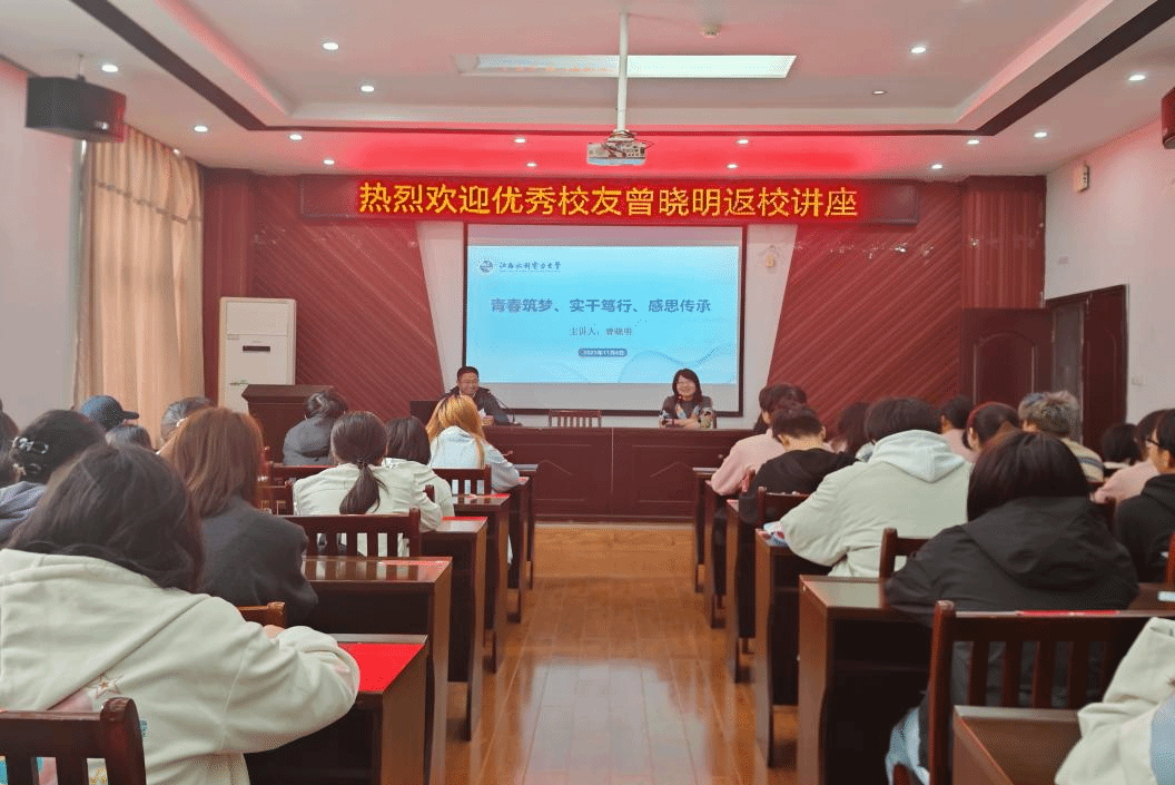 2025年11月6日,正值公司建校67周年之际,2006届现代传媒技术专业优秀员工、江西省江咨设计总院有限公司党总支书记、董事长、总经理曾晓明重返母校,在艺术楼A230会议室开展以“青春筑梦、实干笃行、感恩传承”为主题的专题讲座。作为瑶湖校区首届新生,曾晓明与在校师生共忆求学岁月,分享成长心得,传递奋斗力量。