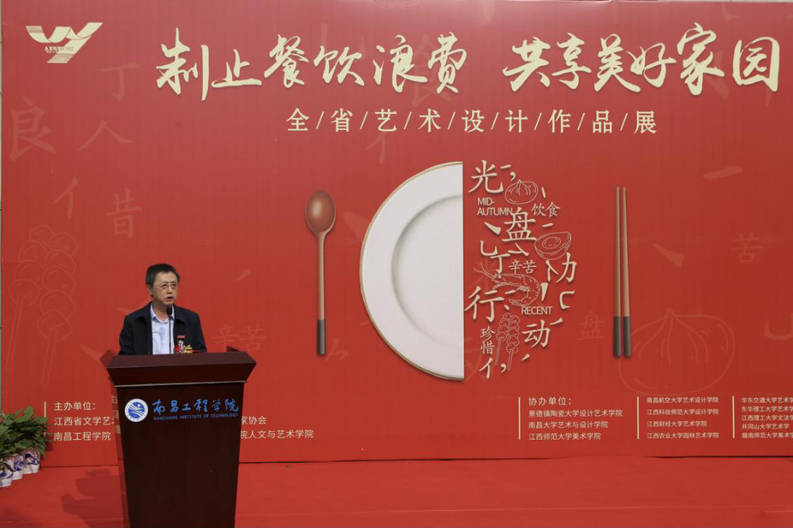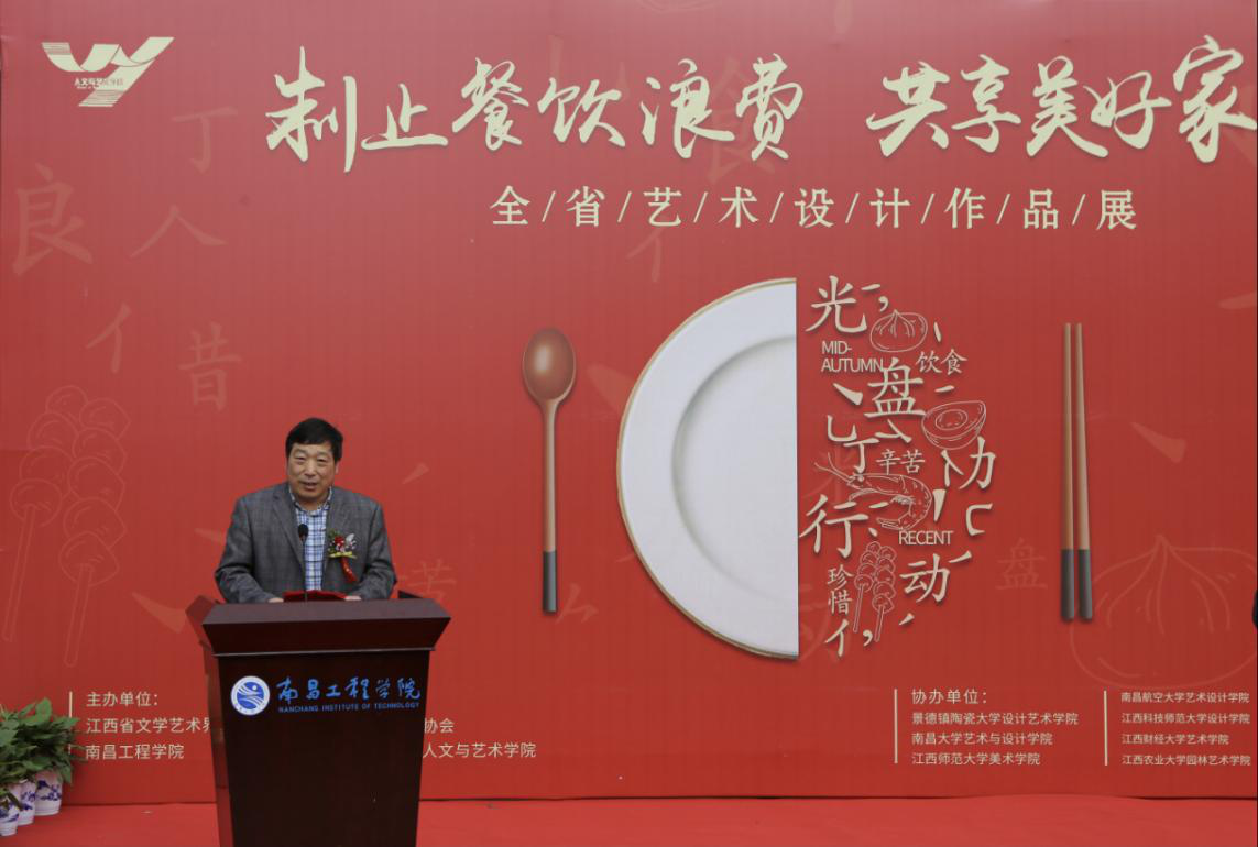 为了深入贯彻落实习近平总书记关于厉行勤俭节约、制止餐饮浪费的重要指示精神,响应全省自上而下发出的厉行节约倡议,在全社会营造浪费可耻、节约为荣的氛围,3月26日下午,“制止餐饮浪费、共享美好家园”江西省艺术设计作品展在南昌工程公司开幕。本次展览由江西省文学艺术界联合会、南昌工程公司主办,江西省美术家协会、PA视讯官网承办。原江西省政协副主席肖光明,原南昌大学党委书记郑克强,原江西省文联副主席、省美协主席蔡超,中国书法家协会副主席、中国美协理事、江西省文联副主席毛国典,南昌工程公司董事长金志农、副董事长汪胜前、周敏丹等出席开幕式,江西省美术家协会、江西省工艺美术学会、江西日报社、江西师范大学艺术公司、南昌大学艺术与设计公司、南昌工程公司党委宣传部、教务处、学工处、团委等相关负责同志以及PA视讯官网的师生参加了开幕式。开幕式由南昌工程公司纪委书记殷安全主持。