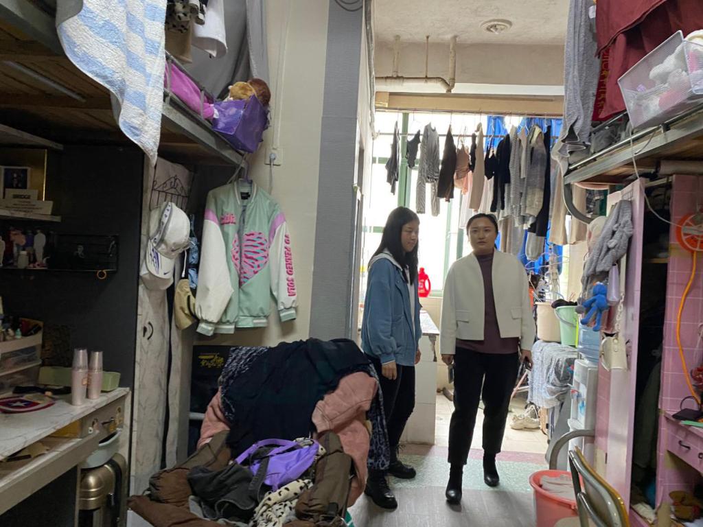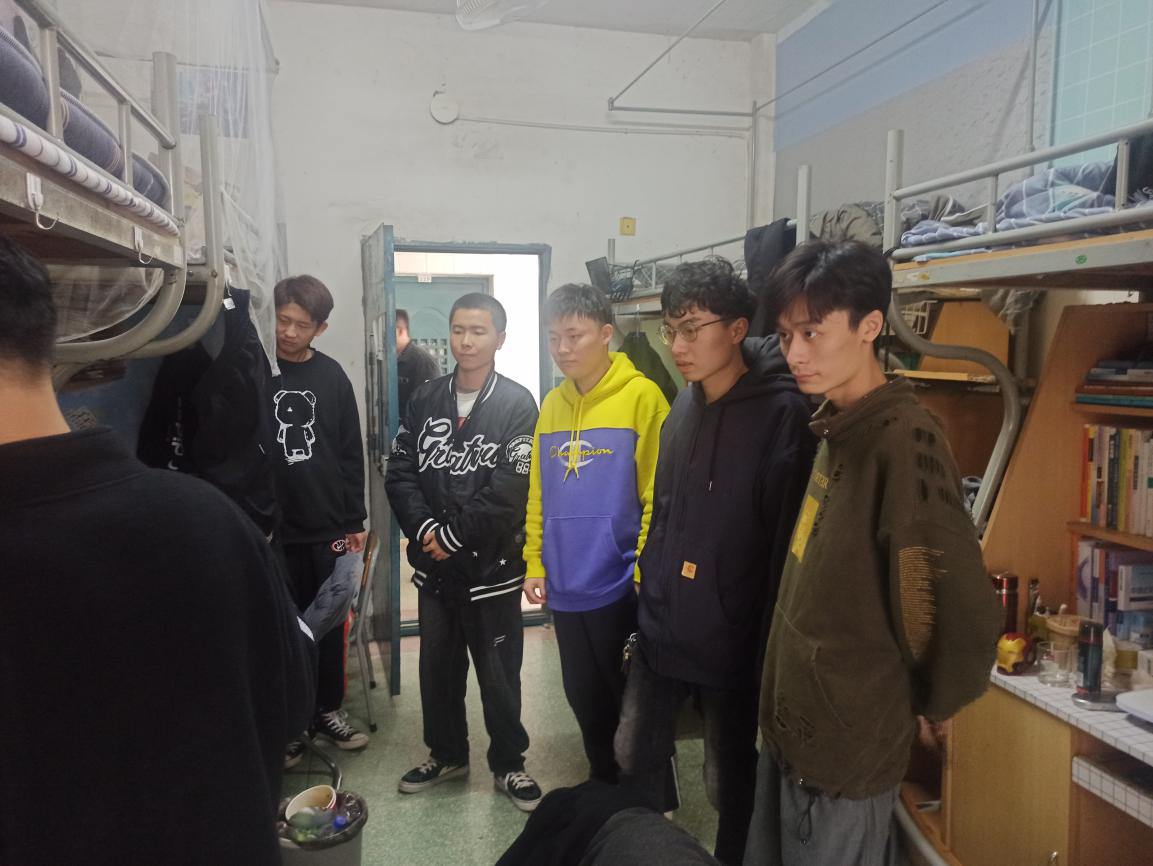 会议结束后,全体参会人员对寝室和社区自习室,开展例行检查工作,查看各寝室内务和是否存在管制刀具、大功率违规电器,并告知同学们要合理制定寝室内部管理制度,加强寝室长的带头作用,做好寝室清洁与卫生。最后,叮嘱提醒同学们,梅雨时节应加强寝室通风、除湿,避免细菌滋生。(图/黄一诺 文/张淑华)