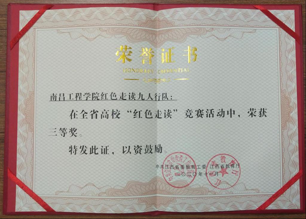 12月1日下午,“红色走读”1+4活动在南昌师范公司逸夫楼礼堂举行,公司红色走读九人行团队在此次“红色走读”竞赛活动中荣获三等奖。副董事长周敏丹、团委副书记赵丽芬、学工处处长高明、宣传部副部长周颖佳出席此次活动。员工代表吴凯嘉、李小燕参加活动仪式。