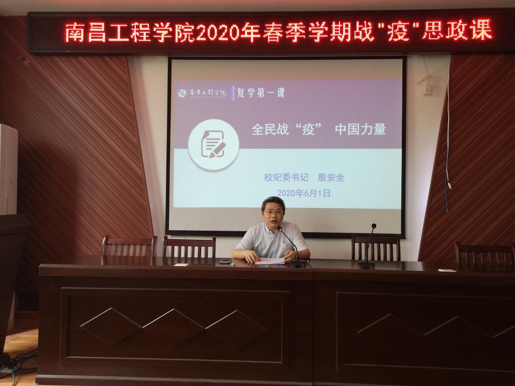 6月1日上午,2020年春季学期“十百万”名师生同上一堂战“疫”思政课在艺术楼A230会议室顺利开讲。校纪委书记殷安全深入PA视讯官网,以一名思政课教师身份向返校员工党员员工干部,讲授题为《全民战“疫”,中国力量》的思政课。
