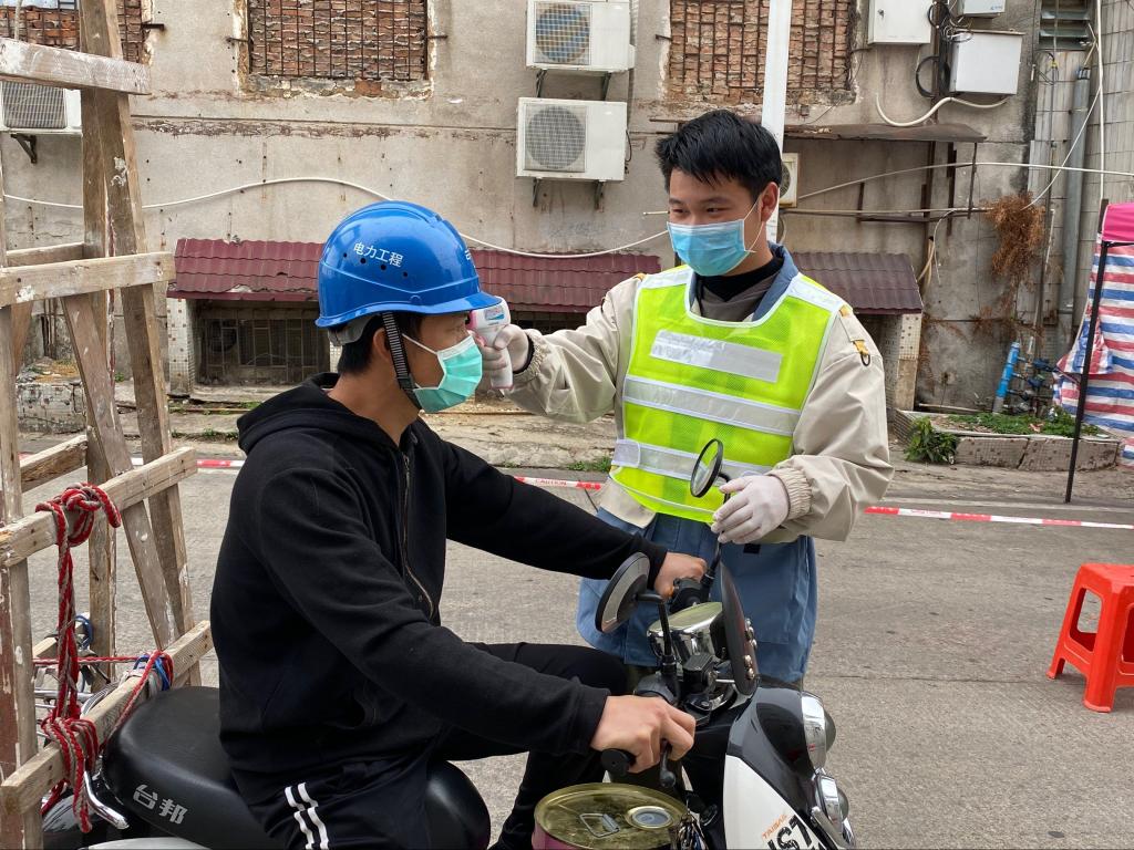 “一天工作要七八个小时,每天对所属街道巷子挨家挨户进行排查,对路口行人车辆进行登记,逐一检查并测量体温、进行登记,同时还要宣传最新政策。”这是付润堃对自己一天工作的描述,作为一名公司退役军人,同时也作为一名入党积极分子。自广东省中山市横栏镇西冲社区志愿服务工作的正式实施,付润堃积极主动报名参与疫情防控工作。这段时间工作需要长时间需要站立,从早上七点一直到下午三四点,且要奔波于各户宣传新政策,只有中午吃饭时才能稍作歇息。他却说希望其他人可以说休息一下,他当过兵,他可以。他记得自己在国旗下的宣誓,铮铮誓言令他更加明确他要为人民做出贡献,守护他的小家,守护这个大家!