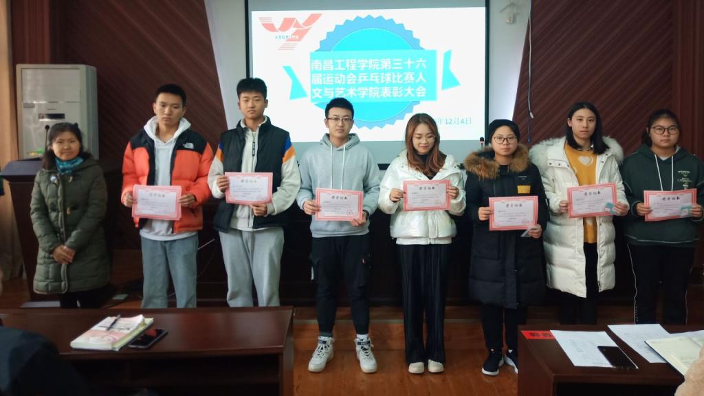南昌工程公司第三十六届运动会乒乓球比赛落下帷幕,公司乒乓球队在杨可儿 ,莫吕文等人的带领下 ,取得了女子第一名,男子第四名的历史佳绩。为了更大程度地培养公司学子团结进取、勇于拼搏的优良品质,公司于2019年12月4日中午在艺术楼A230会议室开展了南昌工程公司第三十六届运动会乒乓球比赛PA视讯官网乒乓球赛表彰大会。我院团委书记蒿佳杭,员工会主席徐祎璠,公司员工会体育部全部部员以及各班级主要班级干部参加了本次表彰大会。