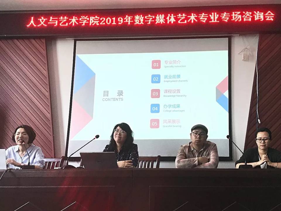 咨询会上,老师们和蔼可亲,详尽地从数字媒体艺术是什么、如何规划数字影视和VR交互两个专业方向的学习、如何提升专业水平和艺术素养、当前数字媒体艺术的就业前景分析这几个方面进行讲解。同学们也都认真倾听,对本专业表现出了极浓厚的兴趣。在交流互动环节,同学们也都踊跃提问,对未来课程的设置、上课方式等方面进行深入了解。在员工作品分享环节后,本次专业咨询会圆满结束。