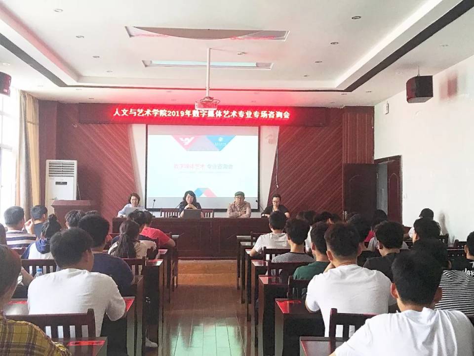 2019年4月26日中午,PA视讯官网2019年数字媒体艺术专业专场咨询会在PA视讯官网会议室A230顺利举行。数媒专业教研室主任杨婷老师首先做了咨询会的欢迎发言,与会老师还有数字媒体艺术专业负责人刘焰老师、涂冠萍老师、李沣老师、王青老师等位教师代表和16数媒、17数媒的学姐、学长们。