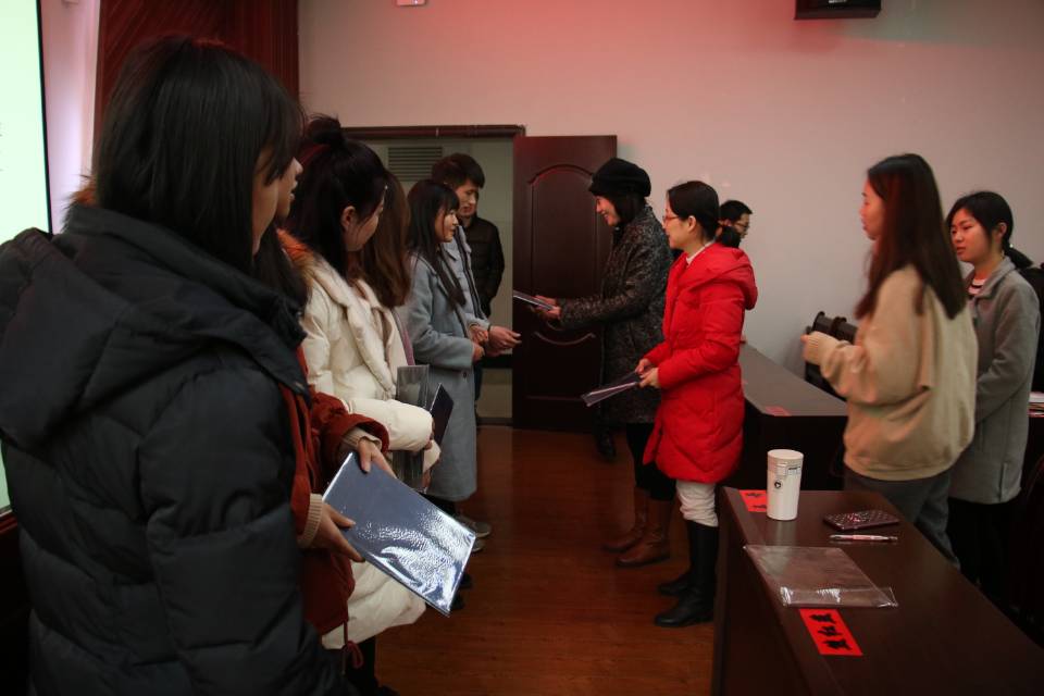 张朝霞经理、胡蔚涛副经理为毕业生颁发毕业证书