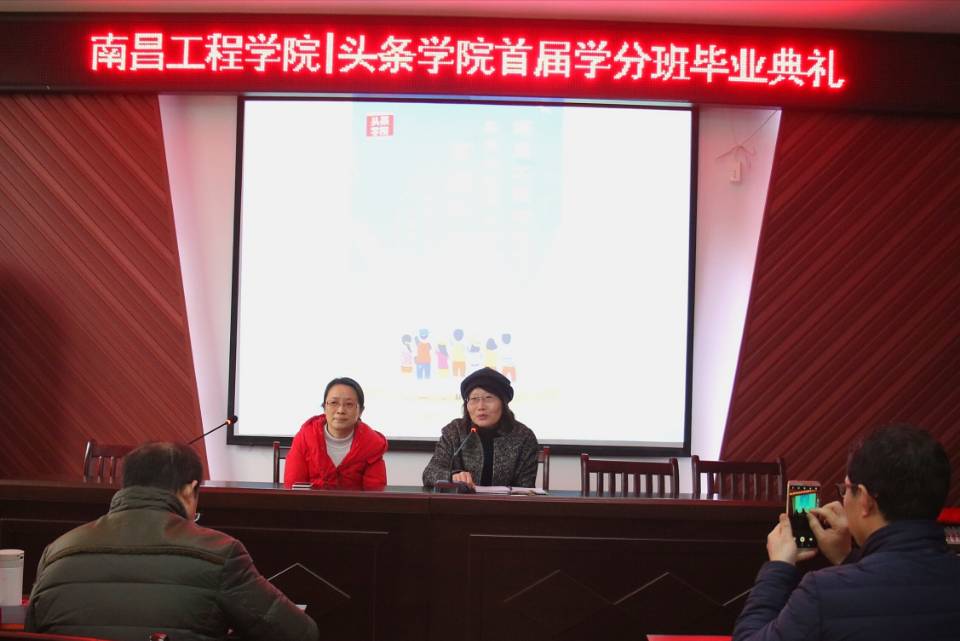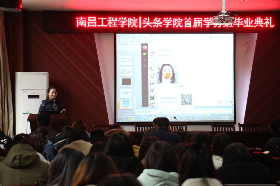 头条公司经理、今日头条文教运营总监王月芳老师和知名自媒体《脑洞历史观》CEO蒋柳老师分别代表今日头条和授课教师以视频的形式为毕业生送来毕业寄语,同时对公司首届学分班学员取得的优异成绩表示祝贺,为公司对头条公司的大力支持表示感谢。