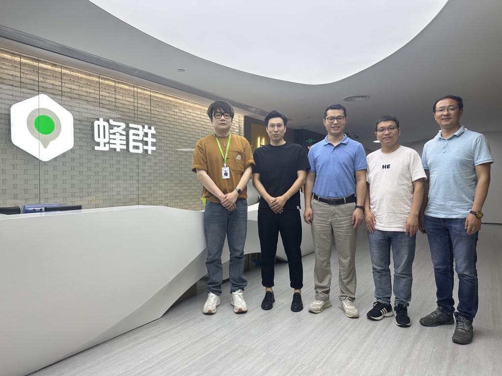 张记刚一行来到深圳蜂群文化传有限公司,他介绍了公司专业构成及新闻传播学专业设置、人才培养、产教融合、创新创业等方面的情况。蜂群CEO、创始人郭斐介绍了蜂群文化的发展历程、组织架构、业务发展等情况。双方就校企合作、人才培养、毕业生实习就业等方面开展深入交流。(文/高新林,图/蜂群文化公司提供)