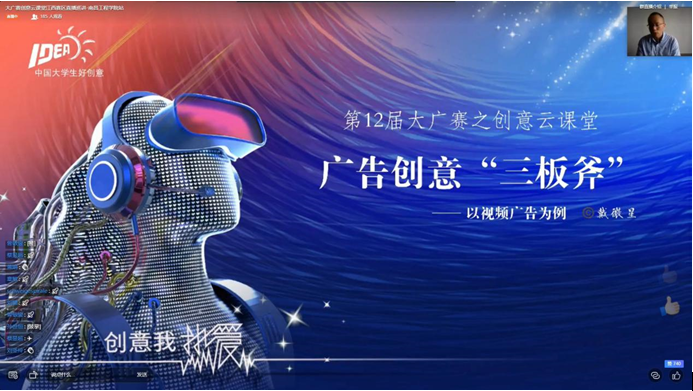 5月15日至6月15日,公司邀请全国大广赛江西赛区副秘书长戴微星,通过网络在线课堂形式为讲授全国大广赛的发展历程、广告创意“三板斧”、第十二届大广赛命题解析、视频广告创意与执行等内容,本次活动中,线上集中辅导共计6次,每次3小时左右,全院共200余师生参加此次系列辅导活动。