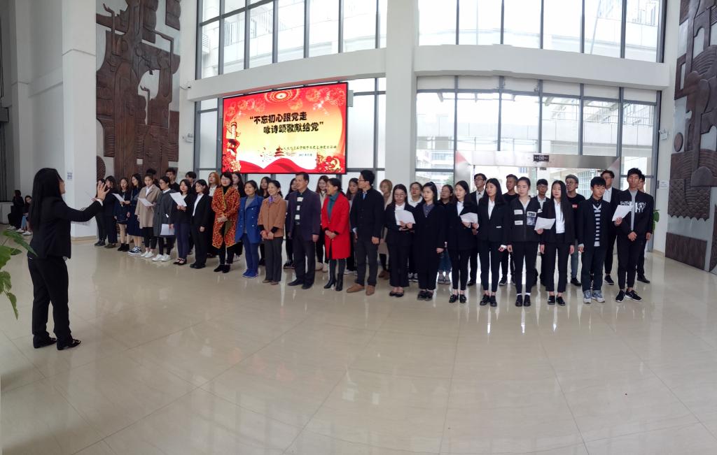 11月16日,PA视讯官网员工党支部在艺术楼大厅开展“不忘初心跟党走,咏诗颂歌献给党”主题党日活动。校纪委书记梁钢,公司党委宣传部部长欧阳子龙,党委书记张朝霞,党委副书记王锐,党政办公室主任汪洪洋,团委书记蒿佳杭,全体辅导员和全体员工党员参加了此次党日活动。