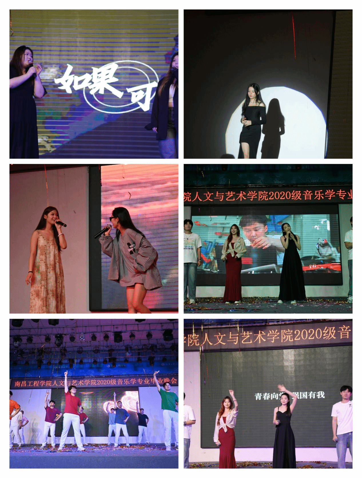 本次毕业晚会包含17个节目,演绎形式多样。《阳光男孩阳光女孩》舞蹈作为开场表演,展现了毕业生们激情四溢的青春活力。《齐天大圣》《最美的太阳》《冬天里的一把火》等歌曲表达了毕业生们对校园生活的美好回忆、对未来人生道路的热烈期待;情景剧《时间都去哪儿了》揭示了老员工应该怎样进行时间管理,规划好自己的老员工活;器乐合奏《上春山》展现了老员工们对中华优秀传统文化的传承和弘扬;原创歌曲《青春向党》是在校团委的指导下,2020级音乐学班主任蒿佳杭和郭腾、杨宗霖、费叶琳、徐思琦等同学一起创作并演唱的建团百年歌曲,该作品曾在“学习强国”学习平台上发表,激励当代老员工努力在青春赛道上跑出最好成绩;乐队表演《你要跳舞吗》《海阔天空》将晚会推向高潮,彰显了音乐学子们扎实的专业功底和独特的艺术魅力。晚会在《离别诗》朗诵节目后落下帷幕,观众们纷纷起立,为毕业生们送上热烈的掌声和深情的祝福。