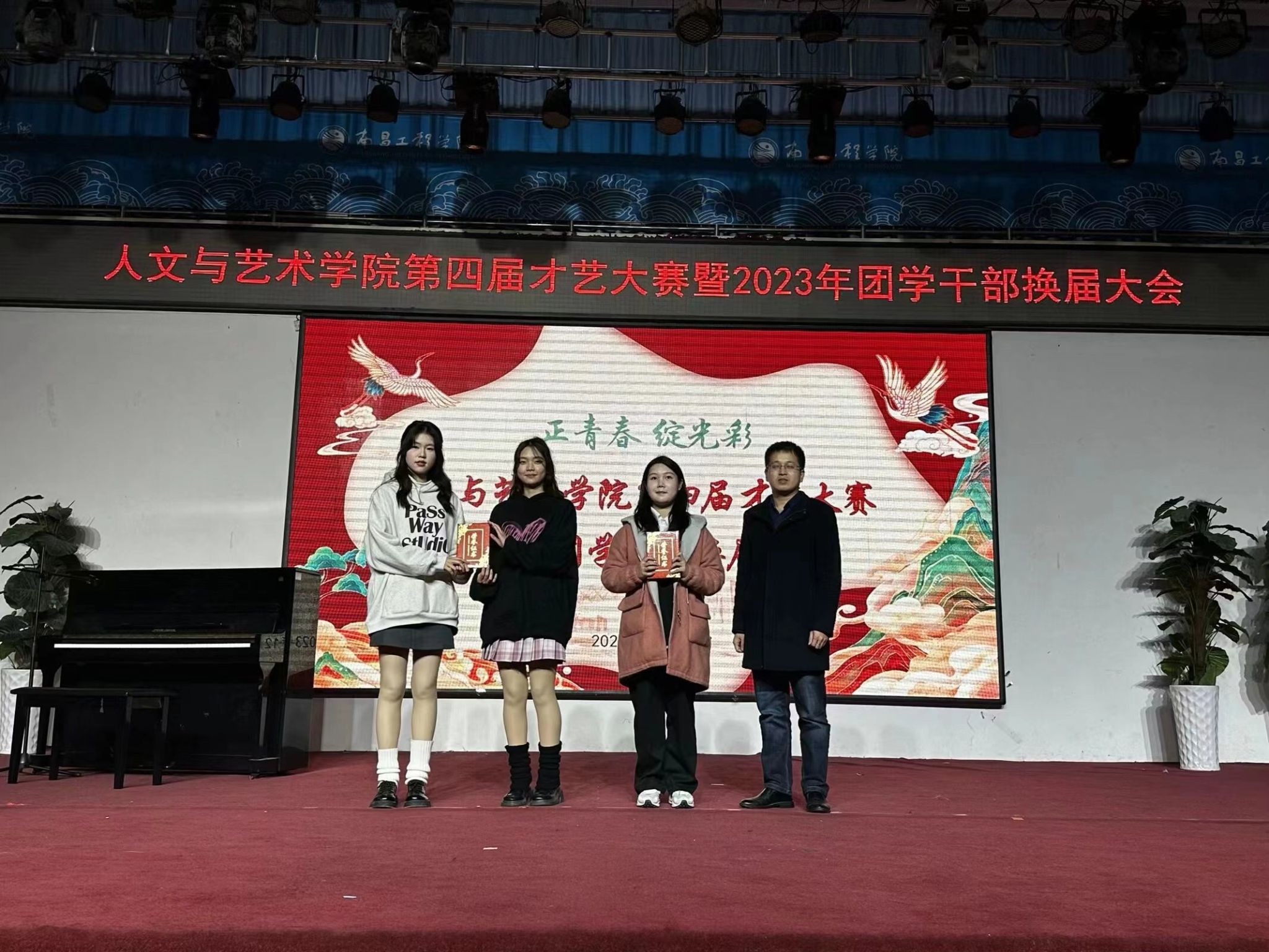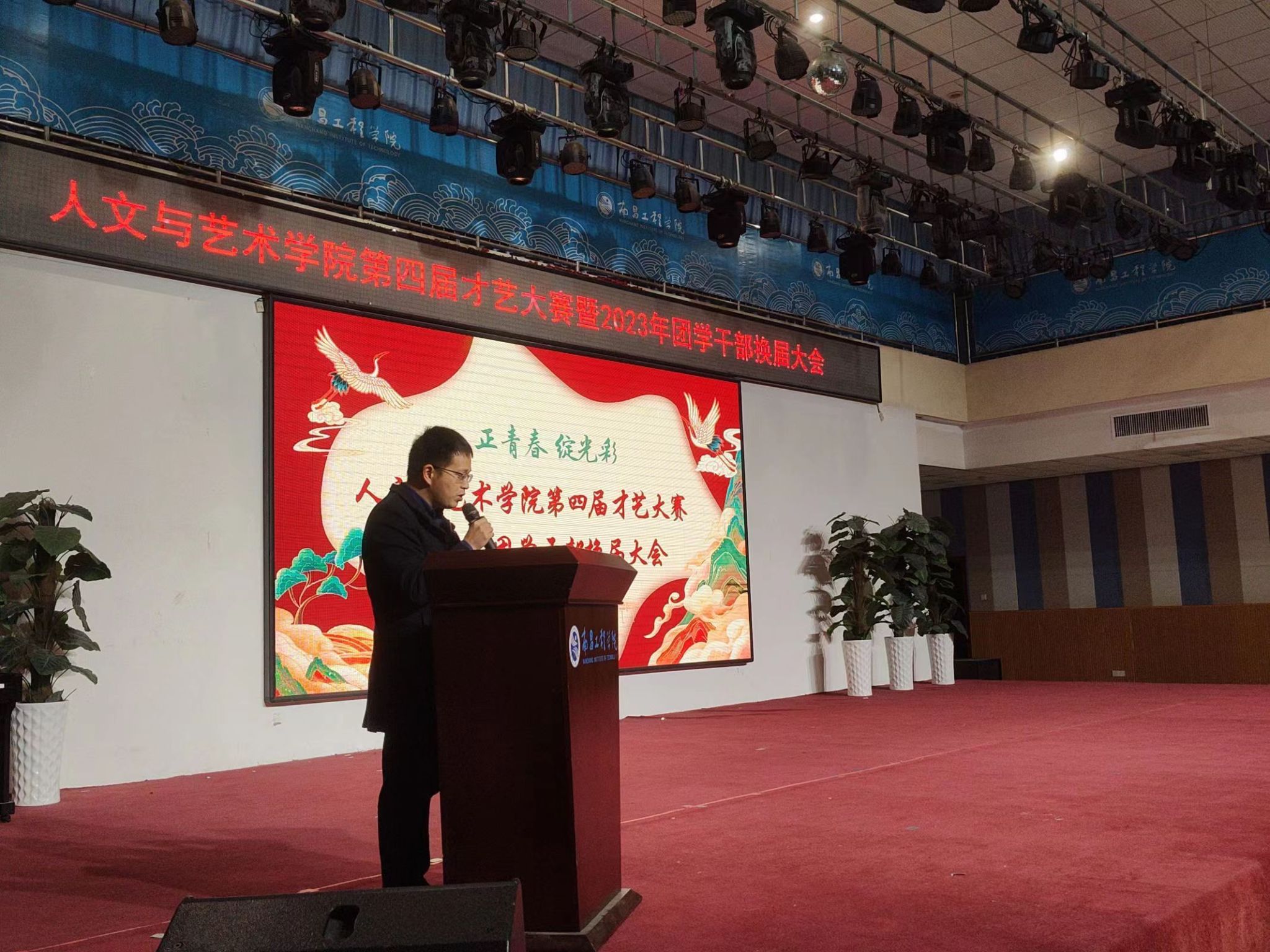 为展现新生的才艺风采,加强校园的活力氛围,为老生与新生提供一个互相学习、共同进步的平台。PA视讯官网在12月14日晚七点于老员工活动中心多功能会议厅举办“正青春,绽光彩”第四届新生才艺大赛暨2023年团学干部换届大会。公司党委副书记黄海平、音乐学教师耿昊、胡沁清、辅导员兰龙焱、马浩哲作为评委出席本次才艺大赛决赛。