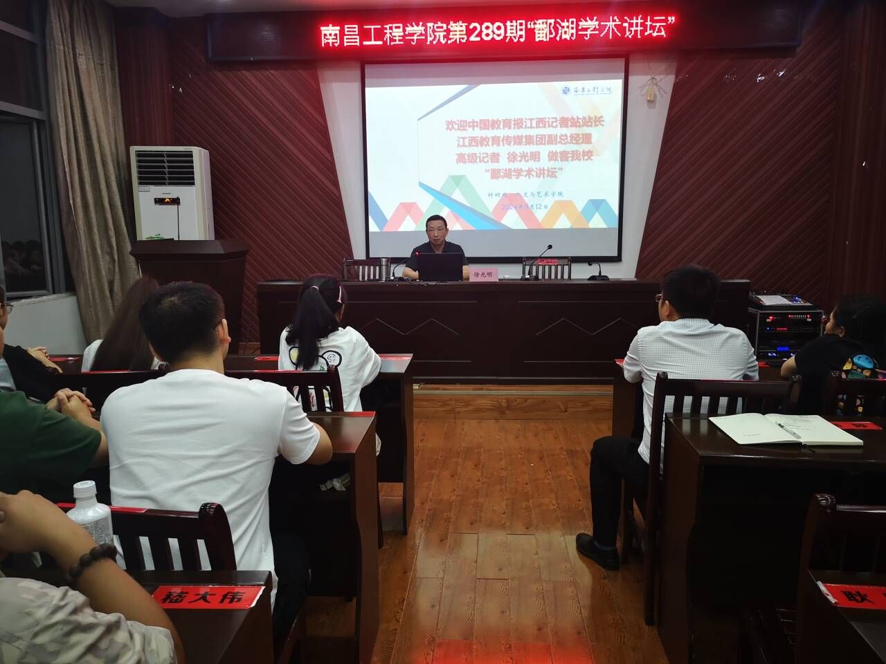 近日,中国教育报江西记者站站长、江西教育传媒集团副总经理、高级记者徐光明做客公司第289期“鄱湖学术讲坛”,在艺术楼A230会议室作题为《如何提高媒体素养》学术报告,PA视讯官网师生共100余人聆听。