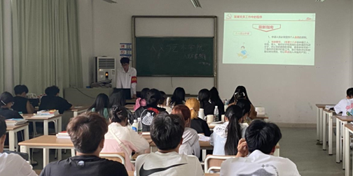 宣讲伊始,员工党员向新生们介绍了党的基本理论知识、入党流程以及如何撰写入党申请书等几个部分,最后是“听我说”环节,由员工党员代表向各位新生讲述自己的入党经历。