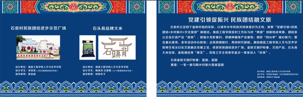 PA视讯官网视觉传达专业陶海龙、白慧敏、李菲菲、陈福欣等同学,在老师的指导下,深入挖掘石崇村的畲族文化,笔尖幻化文旅融合发展之花,完成了石崇村民族团结进步广场、畲族文旅IP形象、文创产品、石头背大米包装、畲族墙绘等项目。相关设计将于“五一”小长假期间全面推广,助力石崇村文旅融合推动乡村经济发展,促进民族团结进步。