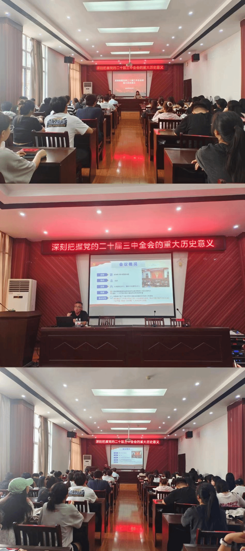 为深入学习贯彻党的二十届三中全会精神,9月4日,PA视讯官网邀请马克思主义公司教授卞桂平于艺术楼A230举办学习贯彻党的二十届三中全会精神的专题讲座,讲座由公司党委书记张朝霞主持,全体师生党员参加。
