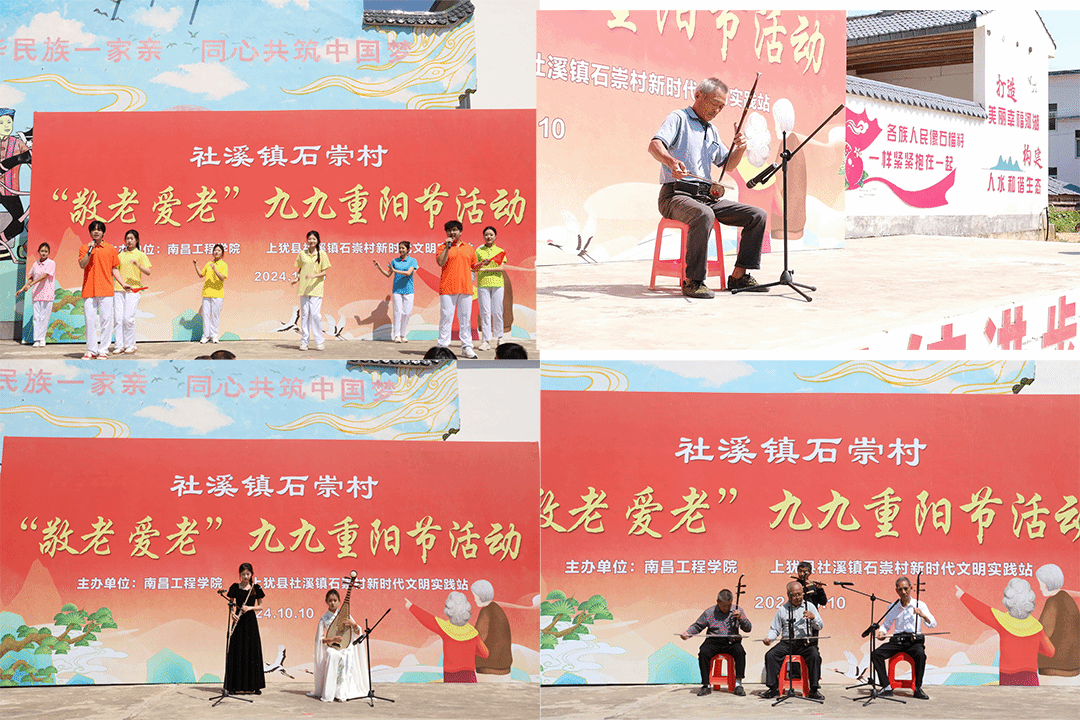 活动现场,师生们以饱满的热情和精湛的才艺,为当地老人们带来了一场精彩纷呈的视听盛宴。他们用动人的歌声唱响《灯火里的中国》《我爱你中国》等爱国歌曲,激昂的旋律中满含着对伟大祖国繁荣昌盛的赞美与自豪,每一个音符都是对祖国母亲的深情告白。古筝合奏《渔舟唱晚》、舞蹈《喜乐年华》等节目,将传统艺术与现代审美完美融合,赢得了老人们的阵阵掌声。齐声合唱《歌唱祖国》环节更是将整场演出推向了高潮,大家用歌声共同祝愿伟大的祖国繁荣昌盛、人民幸福安康。表演结束后,师生与老人们共享丰盛的敬老宴,与老人唠家常、问冷暖,为老人添饭加菜,以实际行动践行敬老爱老的中华民族传统美德。